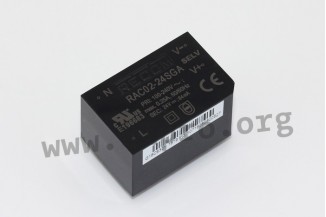AC/DC converter modules in an enclosed plastic housing with 2W, a low no-load power and a universal input. These devices are suitable for direct PCB mounting, are protected against overcurrent as well as short circuit and comply with EN62368-1, EN61000-3-3 as well as EN55032 class A. We offer the following types of this Recom series: RAC02-3.3SGA, RAC02-05SGA, RAC02-12SGA, RAC02-15SGA and RAC02-24SGA.