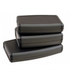 Small handheld enclosures in black or grey made of flame-retardant, UV stabilised ABS plastic (FRABS; UL94V-0) with a one-piece silicone gasket and IP65. These housings are ergonomically designed to lie ...