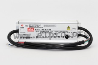 LED drivers in an aluminium case (IP65) with a constant current, a high output voltage, a built-in active PFC function and a wide input range. These devices are protected against short circuit, overload (auto recovery) as well as overvoltage and comply with EN61347-1, EN55015 and EN61000-3-2 class C. They have a 3 in 1 dimming function (0 to 10V DC, PWM, 100kOhm potentiometer) with a control line and are suitable for LED lighting applications. Their output current is adjustable through a built-in potentiometer. We offer the following types of this Mean Well series: HVGC-65-350AB, HVGC-65-500AB, HVGC-65-700AB and HVGC-65-1050AB.