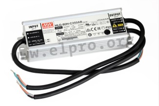 LED drivers in an aluminium housing (IP65) with a high voltage output, 90W and a universal input. These devices are protected against short circuit, overload (auto recovery) as well as overvoltage, are suitable for LED lighting applications and have a 3 in 1 dimming function (1 to 10V DC, 10V PWM). They comply with EN61000-3-2 class C, EN55015, EN61347-1 as well as EN61347-2-13 and have a built-in potentiometer for adjusting the output current as well as a built-in active PFC function. We offer the following types of this Mean Well series: HLG-80H-C350AB and HLG-80H-C700AB.