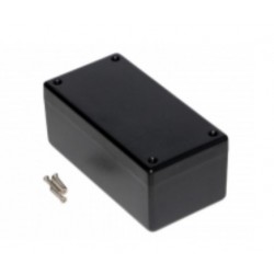 Black general purpose enclosures with an average wall thickness of 3.3mm (0.13"). These ABS housings are IP54 rated and ideally suited for mounting printed circuit boards. The lid is fastened with self-tapping screws.
