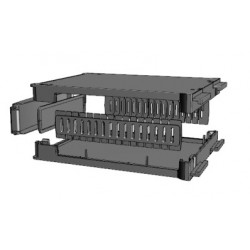 with horizontal mounting slots for the mounting of PCBs and two stand-offs in the base