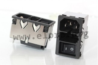 IEC insert connectors C14 with a 2-pole rocker switch and a 2-pole fuse holder for two fuses (5x20mm)