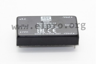 Converter modules in a 2x1 inch housing with 40W and an input voltage ratio of 4:1. These devices do not require a minimum load, are suitable for railway applications as well as for direct PBC mounting and are protected against short circuit, overload, overvoltage as well as overtemperature. They have a built-in remote ON/OFF control and comply with EN55032, DE50155 as well as IEC60571. We offer the following types of this Mean Well series: RDDW60F-12, RDDW60F-15, RDDW60G-12 and RDDW60G-15.