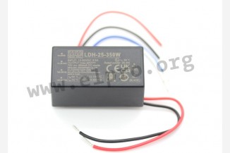 DC/DC step-up converters with 25W, a constant current output and a wide input voltage range. These devices have a dimming function (0 to 10V DC, PWM), are suitable for LED lightning applications and protected against short circuit as well as overvoltage. They are available as versions with wires (LDH-25_W) or soldering pins (LDH_) and comply with EN55015, IEC61347-1 as well as IEC61347-2-13. We offer the following types of this Mean Well series: LDH-25-250, LDH-25-350, LDH-25-500, LDH-25-700, LDH-25-250W, LDH-25-350W, LDH-25-500W and LDH-25-700W.