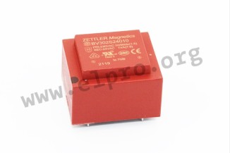 Transformers with an EI30 core and 1VA. These devices are short circuit proof and comply with temperature resistance class Ta 70/B. They are suitable for PCB mounting and are rated for and operating temperature of up to +70°C. We offer the following types of this Zettler series: BV302S06010, BV302S09010, BV302S12010, BV302S15010, BV302S18010 and BV302S24010.