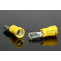 Eyelet terminal boards and single soldering eyelets for screwing, straight and angled soldering pins of different platings, tinned or silver-plated plug contacts, test points with various colour codings, mount screw terminals, mounting tabs for screwing or soldering onto a PCB, receptacles of different dimensions, butt splices, branch terminals, cable shoes and end sleeves from manufacturers such as Vogt, Osterrath and Rademacher.