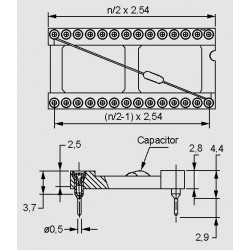 * precision socket with integrated 100nF capacitor for broadband decoupling up to 100MHz