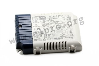 LED drivers in a plastic housing with a low no-load power (<0,5W), a DALI interface (DT6/DT8) and protection class II. These devices are suitable for LED lighting applications, have 2 output channels (tunable white) and comply with EN61347-1 as well as EN55015. Furthermore, they allow simple and independent control of the brightness and colour temperature of white LEDs and are protected against overvoltage, short circuit as well as overtemperature. We offer the type LCM-40TW of this Mean Well series.