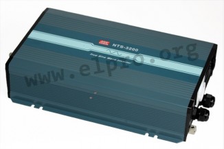 Inverters in an enclosed housing with 3200W, a remote ON/OFF control and an adjustable output voltage. These devices have a pure sine wave output (THD<3%), are suitable for a peak power of 6400W and are protected against overload, overtemperature, short circuit as well as overvoltage. They are suitable for Li-ion as well as lead-acid batteries and comply with EN62368-1 as well as EN55032 class A. We offer the following types of this Mean Well series: NTS-3200-212EU, NTS-3200-224EU and NTS-3200-248EU.