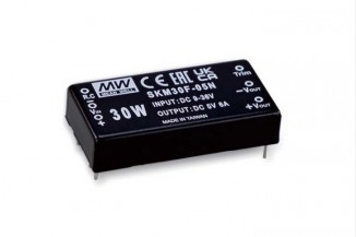 DC/DC converter modules in a 2"x1" housing with 30W, an input voltage ratio of 4:1, a trimming output (±10%) and a remote ON/OFF control. These devices are suitable for PCB mounting and are protected against overload, overvoltage as well as short circuit. They do not require a minimum load and comply with EN55032 class A. We offer the following types of this Mean Well series: SKM30F-05N, SKM30F-12N, SKM30F-15N, SKM30G-05N, SKM30G-12N and SKM30G-15N.
