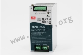 DC/DC converters in a DIN rail housing (TS-35/7,5/15) with 120W, a regulated output voltage, a DC OK relay contact and an input voltage ratio of 6:1. These devices have a width of only 63mm, a fanless design and are protected against overload, short circuit, DC input reverse polarity, overtemperature as well as overvoltage. They are suitable for an operating altitude of up to 5000m and comply with IEC62109-1, EN62109-1 as well as EN55032 class A. We offer the following types of this Mean Well series: DDRH-120-12, DDRH-120-24, DDRH-120-32 and DDRH-120-48.