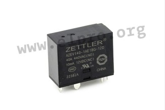 Relays in a 35x16x28mm housing with 40A, 1 normally open load contact (SPST-NO) and 1 changeover signal contact. These devices are suitable for e-mobility applications and can withstand a short-circuit of up to 1850A. They are flux-tight (RTII) and have a dielectric strength of 4000VRMS. We offer the following types of this Zettler series: AZEV140-1AE1BG-5D, AZEV140-1AE1BG-9D, AZEV140-1AE1BG-12D, AZEV140-1AE1BG-24D, and AZEV140-1AE1BG-48D.
