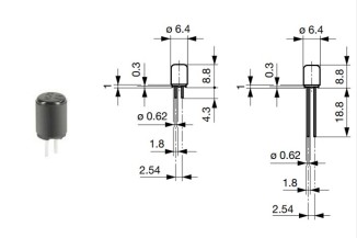 Miniature fuses in a radial type plastic housing (UL94V-0) with short terminals (4,3mm) made of tin-plated copper. These fuses have a fast acting characteristic (F) and are suitable for PCB mounting (soldering/plug-in). They have a breaking capacity of 100A and a diameter of Ø6,4mm. We offer various types of this Schurter series.