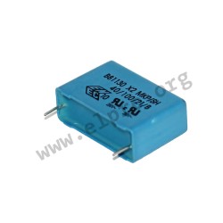 MKP EMI/RFI suppression capacitors in a plastic housing (UL94V-0) with 275V. These capacitors comply with class X2 and have a compact size. They are suitable for PCB mounting and have self-healing properties. We offer the type B81130-B1474-K of this TDK / Epcos series.