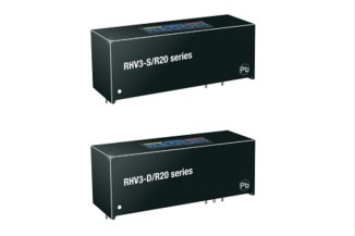 These DC/DC converter modules in a SIP16 housing have a output current of 3W and are suitable for direct PCB mounting. In type RHV3-_S they are equipped with a single output and they conform with the safety norm...