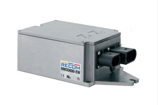 DC/DC converters in a 8"x4,53" housing, with a high power density, chassis mounting, and ground plate cooling. These devices function in parallel usage, and are woter and dust proof (IP69K). They are protected against over load,over temperature, and short circuit. We offer the RMOD600-80-13SEW type of this Recom series.