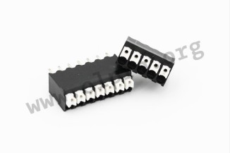 These spring terminal blocks with a confirmation push button have a vertical wire entry and a vertical screw direction. They have a pitch of 3,5mm and are reflow proof. These terminal blocks are available as a single terminal block (AK4601_VBKHT), a single terminal block with blister strap on wheels (AK4601_VBKHT-G), with shifted pins (AK4601_VP-VBKHT), and with shifted pins and blister strap on wheels (AK4601_VP-VBKHT-G). We offer various types of this PTR Hartmann series.