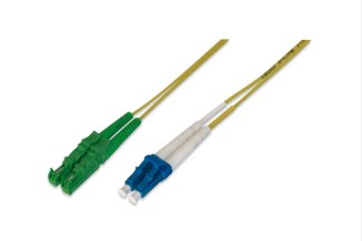 Duplex LWL patch cables in yellow, with one E2000/APC plug and a LC/UPC plug connection, resp. with two E2000/APC plug connections (AL-9E2000-01I and AL-9E2000-02I). We offer the following types of this Digitus series: AL-9E2000-01I, AL-9E2000-02I, AL-9E2000LC-01I, AL-9E2000LC-02I, AL-9E2000LC-03I, AL-9E2000LC-05I, and AL-9E2000LC-10I.