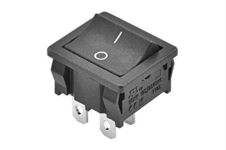 Black, unilluminated rocker switches with 10A. These switches have two normally closed contacts and are suitable for 22,4x19,2mm cut outs. We offer the 3050-K1P0T4DSBKBK type of this Chily Precision series.