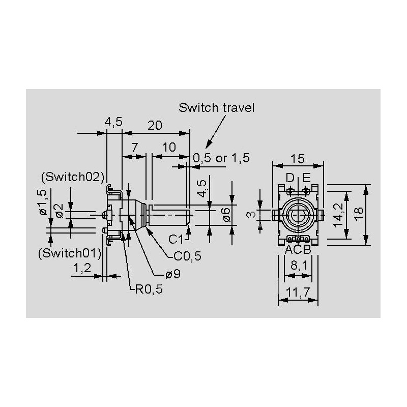 partly with a push-on switch (EC11E15244G1/EC12D1564402)