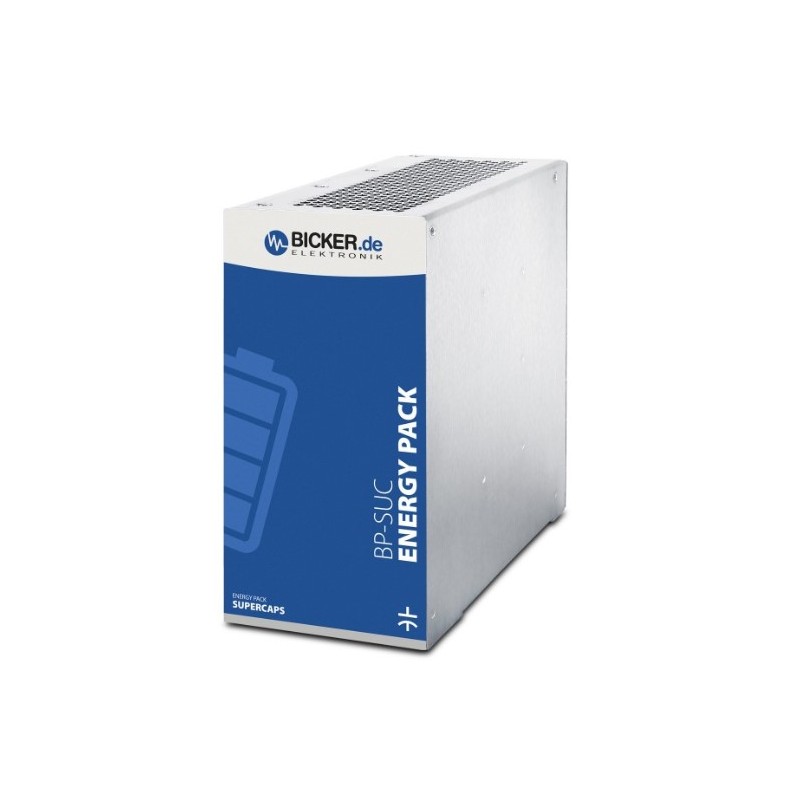 External energy supercap storage units in an open-frame type (BUP-SUC_) or a DIN rail housing (BUP-SUC_D) with 10,4 to 30V. These maintenance-free and durable energy storage units are suitable for UPS systems (UPSI series) and have a high power density and a cycle stability of >500.000. They are protected against overvoltage as well as overcurrent and have an SMD fuse at the output. We offer the following types of this Bicker Elektronik series: BP-SUC-1033, BP-SUC-1645, BP-SUC-30090, BP-SUC-1033D, BP-SUC-1645D and BP-SUC-30090D.