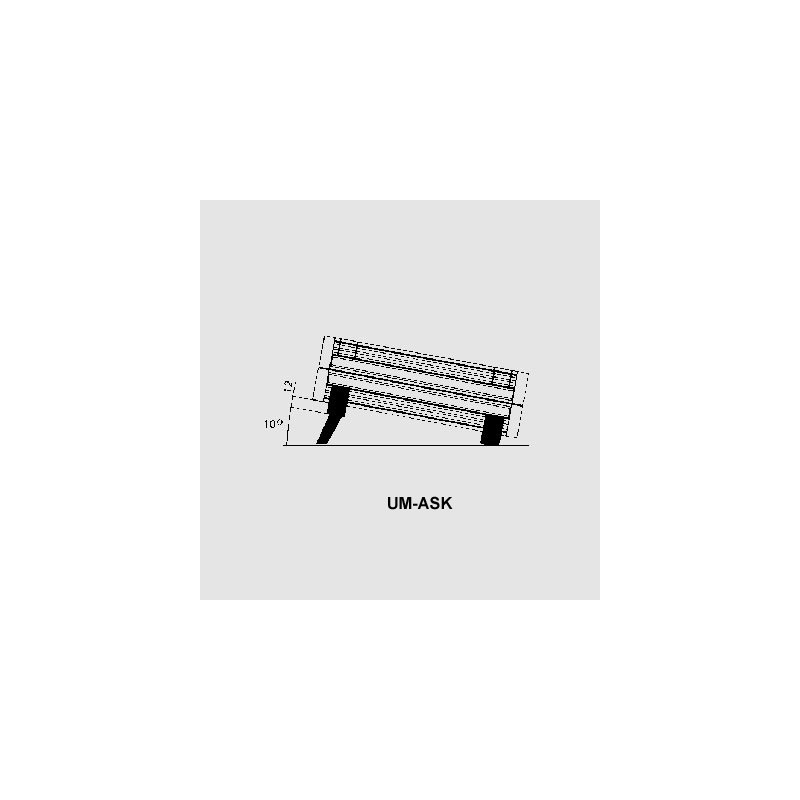 17160 UM-ASK 56012100 56012100 ABS desktop enclosures. * the enclosure is composed of two half shellsoptional:* front and back panel (FP_)* assembly set in two depths (AB_L)* four fixed feet (UM-AS)* two fixed and two folding feet (UM-ASK)half shell enclosures* ABS half shell enclosures with molded, covered louvers in the upper and lower part* surface with eroding structure in light grey (similar to RAL 7035)* due to the symmetry of the half shells, connection possible using four M3 screws in the upper or lower part.* the screw holes can be covered with eight provided cover caps.* cams for cutting screws are available in the enclosure shell halves.* the cam mass is especially co-ordinated to meet European card format.* the nuts in the side panels of the shell half slots are attached at a distance of 10mm, in order to be able to push in panels vertically.UM 32009 L - 2 half shells UM3, louvredUM 32609 L - 2 half shells UM3, deep, louvredUM 52011 L - 2 half shells UM5, louvredUM 62009 L - 2 half shells UM6, louvredUM 62609 L - 2 half shells UM6, deep, louvredFP 30009 - 1 front panel for UM3, without extension setFP 30018 - 1 front panel for UM3, with 1 extension setFP 50011 - 1 front panel for UM5, without extension setFP 50020 - 1 front panel for UM5, with 1 extension setFP 60009 - 1 front panel for UM6, without extension setFP 60018 - 1 front panel for UM6, with 1 extension set FP 60027 - 1 front panel for UM6, with 2 extension sets front and back panel FP_ * made of anodized aluminium, insertable* 2mm thick* 11 front panels available in different variationsextension set AB_L* the enclosure height can be extended by a maximum of three extension sets, each 45,72mm (1.8")* material ABS, color light grey (similar to RAL 7035)* the assembly parts are connected with M3 screws underneath each otherset-up foot set UM-AS* set-up foot set consisting of four fixed feet in agate grey * enclosure has more ground room (12mm) which particularly improves the air circulation of either horizontally or vertically stacked enclosures* the feet can alternatively be used for horizontal or vertical placed enclosuresset-up foot set UM-ASK* set-up foot set consisting of two fixed feet and two folding feet in agate grey* enclosure is diagonally set-up to facilitate e.g. reading displays* the feet can alternatively be used for horizontal or vertical placed enclosures