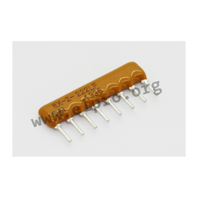 1140144608X-102-563LF4608X-102-563LFBourns thick film resistor network series 4600X. 8 pins4 resistorspower rating: 0,3Wpitch: 2,54mmtolerance: ±2%contacts: Sn/Ag/Cu-platedworking voltage Umax.: 100Vtemperature range: -55 to +125°Cinsulation resistance: 10000MOhmdielectric withstanding voltage: 200VRMShousing: SIP/SILlow profile is compatible with DIPsmarking on contrasting background for permanent identification