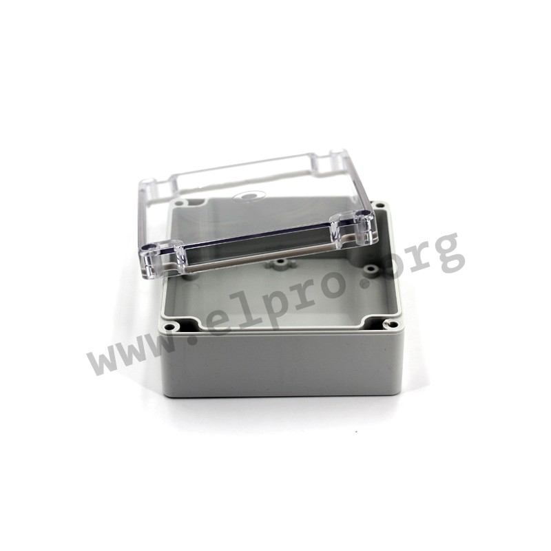 Light grey universal enclosures made of polycarbonate with a sealing and a screwed cover. These enclosures are outdoor-compatible, suitable for wall mounting and meet protection class IP65 resp. IP66. They are suitable for mounting printed circuit boards and comply with IEC62262 (tested to IK 07). We offer various types of this BOX4U series.