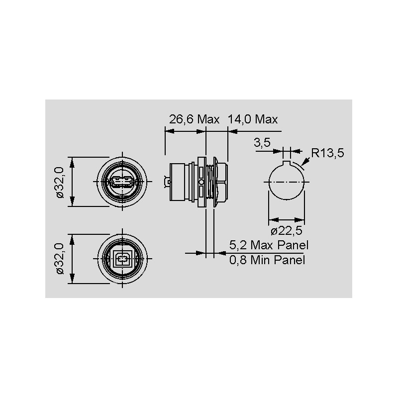 • USB female/straight connector