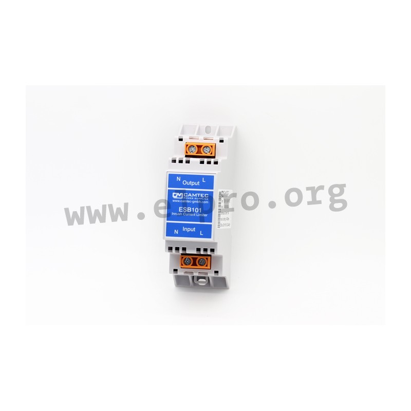 Single- (ESB101_/ESB201_) resp. three-phase (ESB303_) peak / RMS current limiters in a plastic housing (IP20/UL94V-0) for capacitive loads (1000µF to 10.000µF). These devices have an integrated bypass relay as well as a built-in temperature monitoring and comply with EN60950-1, EN61010-1, EN62368-1 as well as EN55032. We offer various types of this Camtec series.