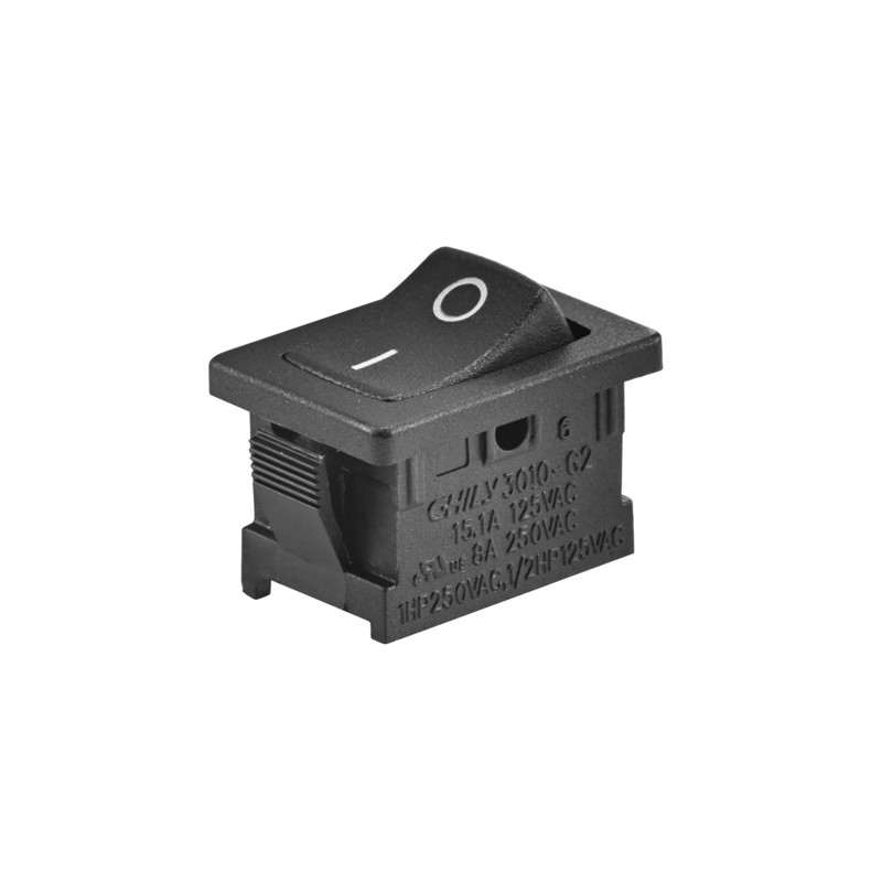 Black, unilluminated rocker switches with 8A. These switches have one normally closed contact, resp. one changeover contact (3010-C1T2G2C02B02 and 3010P5C1T2G2C02B02) and are suitable for 12,9x19,2mm cut outs. We offer the following types of this Chily Precision series: 3010-C1T2G2C02B02, 3010-C1T2G2C01BKBK, 3010-P3C1T2G2C01, and 3010P5C1T2G2C02B02.