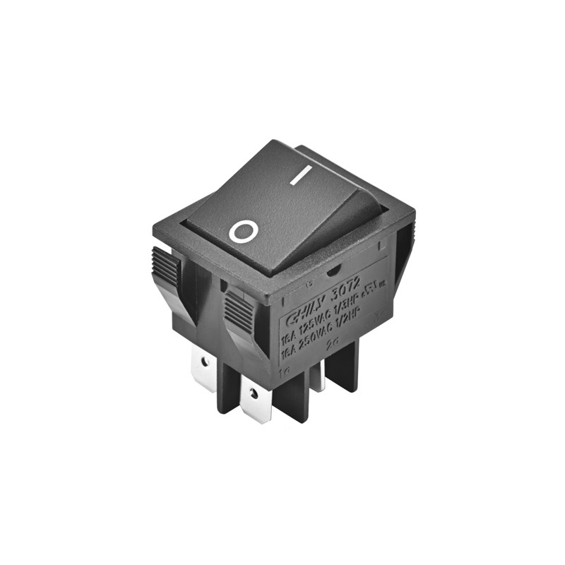Black, illuminated or unilluminated rocker switches with 20A. These switches have two normally closed contact and are suitable for 22,1x30,1mm cut outs. We offer the following types of this Chily Precision series: 3077-K4P2L1T1C01B, 3077-K1P0L0T1C01AB, 3077-K1P2L0T1C01B, 3077-P0L2T1C01B01, and 3077-P0L1T1C01B01.