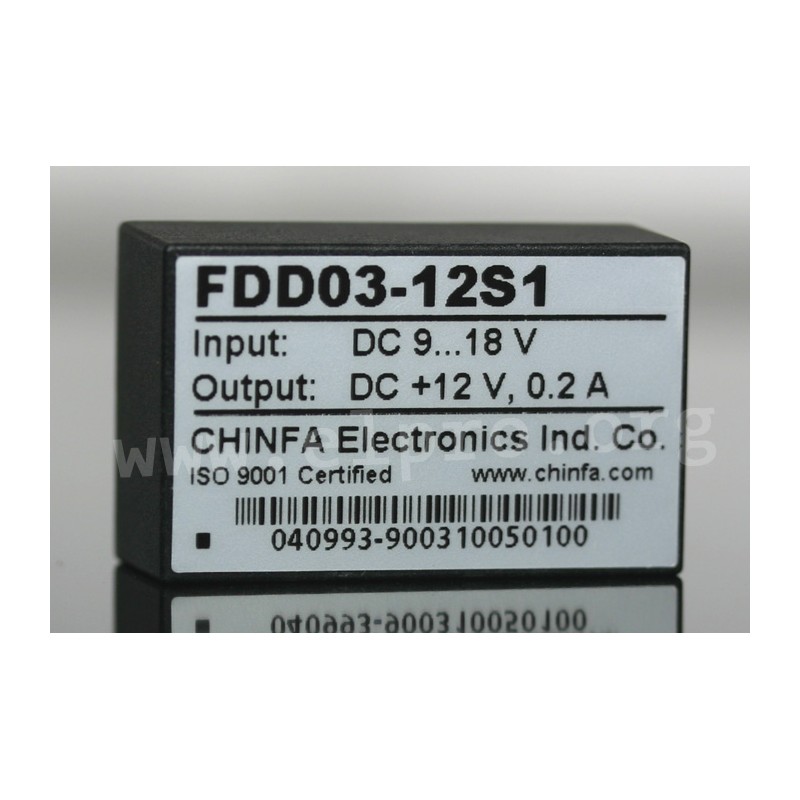 DC/DC converters in a DIL24 housing with 2 to 3 W output power are ideal for direct PCB mounting. These devices have both single and dual outputs, allowing for versatile use in various applications. With an input voltage range of 2:1 and 3:1, they provide DC decoupling of input and output while maintaining regulated output voltage. The converters are short-circuit proof, ensuring reliable operation even under challenging conditions. They can withstand high voltages up to 1500 V DC on the input/output side without any issues. Operating temperatures ranging from -40°C to +71°C make these Chinfa products suitable for use in harsh environments where temperature fluctuations occur frequently. We offer the type FDD03-12S1 of this Chinfa series.