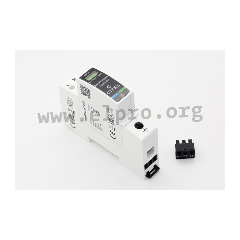 Type 3 surge protection devices (SPD) in a compact plastic housing (IP20) for protection class I applications. These devices are suitable for DIN rail mounting (35mm) and comply with IEC61643-11, EN61643-11 as well as UL1449. We offer the following types of this Citel series: DAC15CS-11-275 and DAC15CS-31-275.