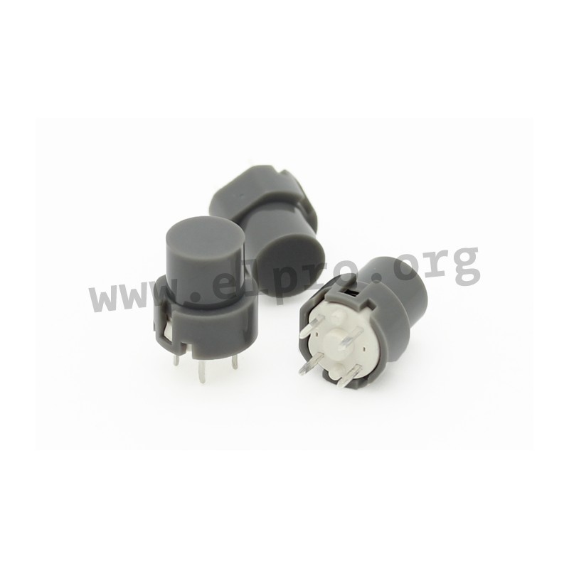 13168 D6R grau D6R10F1LFS D6R10F1LFS round key. • single pole momentary switch with an SPST contact for mounting on an electronic keyboard• positive tactile feedback• colors: blue, yellow, green, grey, red, black or white• switching capacity, max.: 3VA• switching voltage, max.: 32V DC• switching current, max.: 100mA DC• test voltage (50Hz, 1min.): &gt;250V• operating life at max switching capacity: &gt;2.5x105 operations• contact resistance: &lt;100mΩ• insulation resistance: 108Ω• contact bounce time: &lt;10ms• operating force: 1.3N (0.8...1.8N)• switching travel: 0.2...1mm• hand soldering: 350°C/3s• wave soldering: 260°C/5s