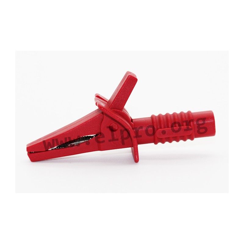 112310 FCR7941 FCR7941 Cliff safety alligator clip series FCR79. Insulated safety alligator clips with socket terminal (Ø 4mm). These clips with a rated voltage of 600V/1000V are in compliance with EN61010. Their jaws open to 25mm. We offer these safety alligator clips in black (FCR7940), red (FCR7941), green (FCR7942) and blue (FCR7943).