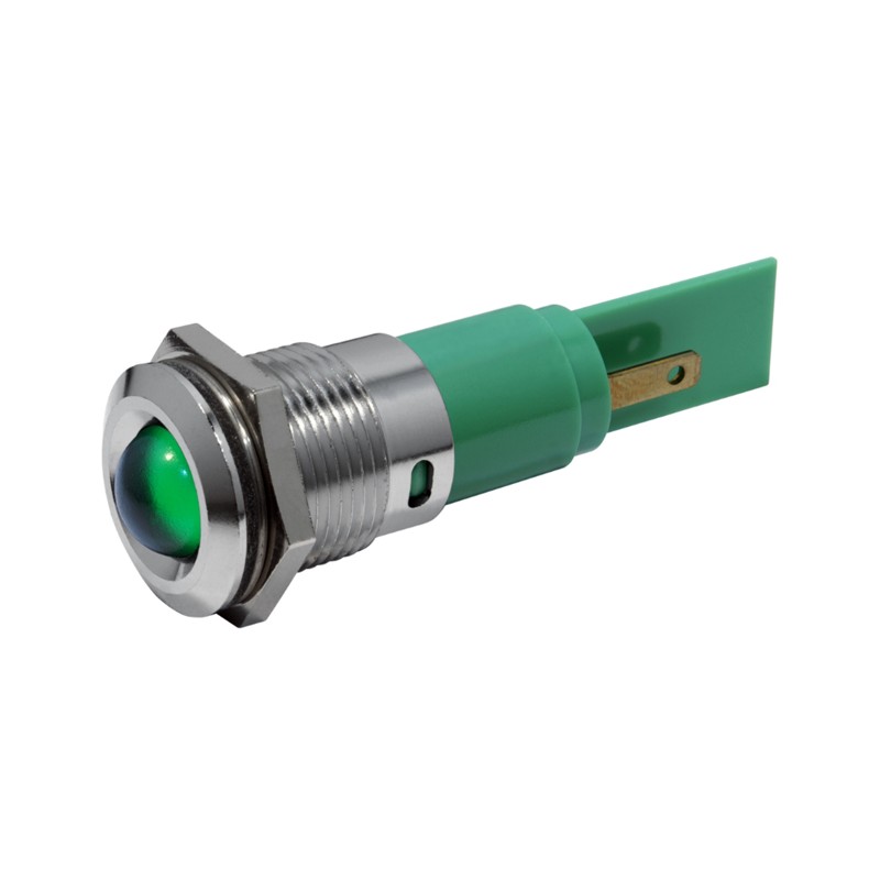 LED indicators with an external bezel and a flat plug terminal for panel mounting. We offer the following types of this CML series: 19400230M, 19400232M, 19400235M, 19400237M, and 1940023WM.