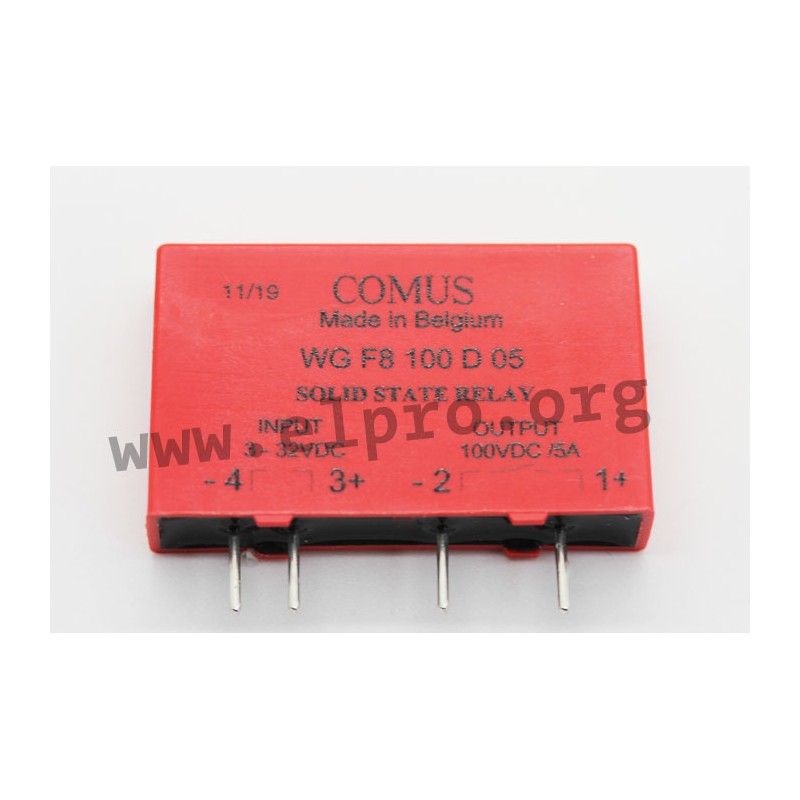 113444 WG F8 100 D 05 WGF8-100D05 WGF8-100D05 Comus solid state relay series WGF8. housing: SIL MOSFET output DC current for resistive, capacative and inductive DC loads