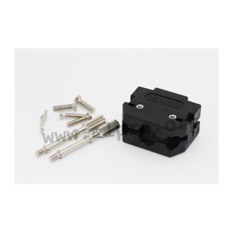 Two-piece hoods made of ABS (UL94V-0) with integrated cable clamping and a straight cable entry. They have secure screws and a strain relief.