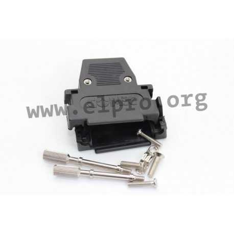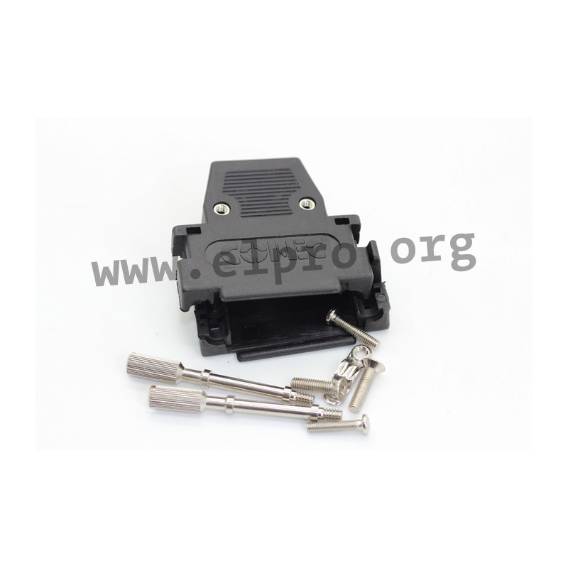 Two-piece hoods made of ABS (UL94V-0) with integrated cable clamping and a straight cable entry. They have secure screws and a strain relief.