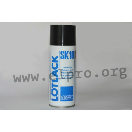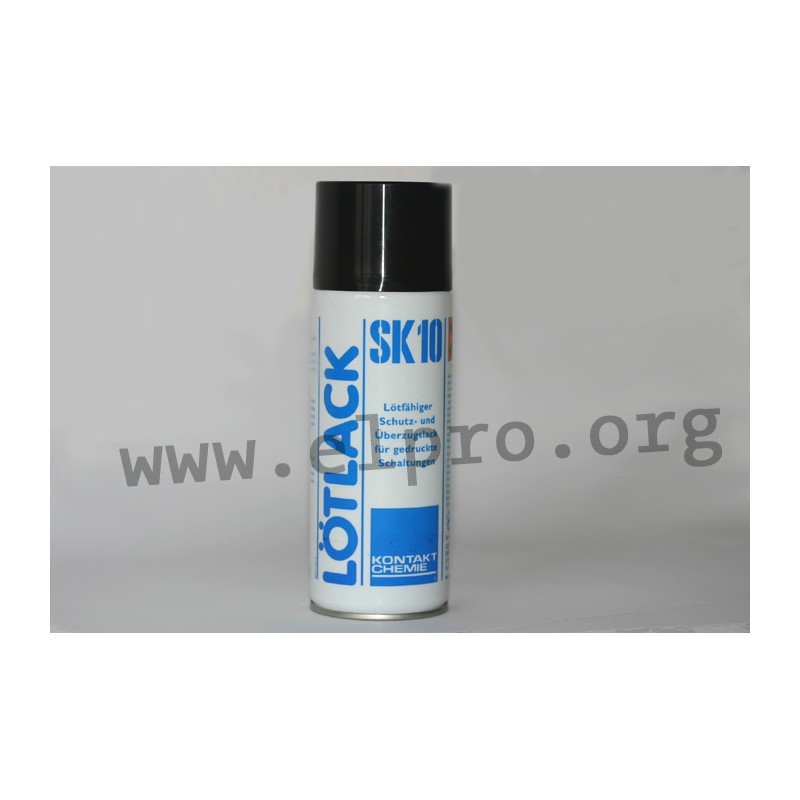 1248 K10 400 ml 1035392 1035392 PCB production. suitable for the production of prototypes and small series. A proven method for the production of printed circuits, the transparent positive-pattern from the circuit diagram is accurately transferred onto the copper plates coated with POSITIV 20. After etching, the spraying of LÖTLACK SK10 is recommended to protect the circuits against oxidation. It acts as a highly effective flux during subsequent soldering. K10-_ flux lacquer, flux-active protective resin• protects against corrosion, acts as a highly effective flux• lacquer-like transparent solution on a base of natural resins with no additives. Part F-SW31 (DIN 8511T2)• drying time at 20°C: approx. 30 mins.• temperature range: 0...60°C• protect against damp as the resin undergoes slow hydrolysis. Plastik 70 or Urethan 71 is recommended for permanent protection