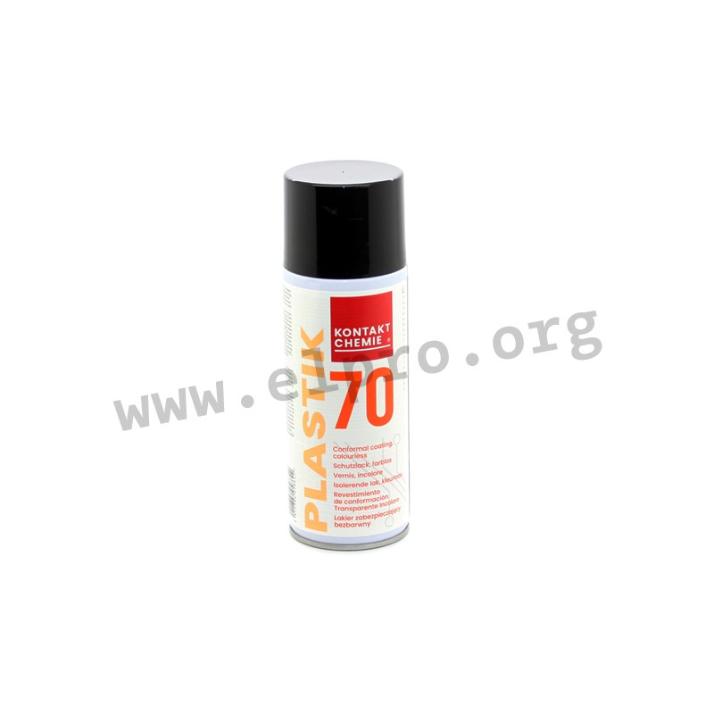 245326 K 70 1 Liter 1035381 1035381 The electric isolation of PCBs is at risk due to moisture, industrial dust particals or corrosive atmosphere. The CRC PCB lacquer contains high leakage current and dielectric strength and is used for the protection of PCBs.acryl lacquer, transparent K70 400 ml* universal insulating lacquer for multiple use* quick drying, colourless transparent, flexible, UV light resistant* protects PCBs and surfaces against humid anorganic-acid or caustic vapours* low viscosity, solvent drying acrylic based lacquer* drying time at 20°C: 15...20 mins.* durable adhesion in temperature ranges between -40...+ 60°C, short period temperature capacity at 100°C (max. 0,5h)* dielectric strength >80kV/mm* directly solderable for repair purposesacrylic resin lacquer K 70 super* protective and insulating lacquer for highest demands* colorless acrylic resin lacquer combines fast dry time with maximum protection and insulation* prevents leakage current* provides reliable long-term protection against dirt, moisture, corrosive fumes and changing weather conditions.* wide temperature range: -40 ... +125°C* hardens quickly* UV tracer: inspect the area coveragepolyurethane-alkyd resin coating, transparent K71* increased protection in aggressive environments* air drying one-component polyurethane-alkyd resin coating* protects against humidity, soluble vapours, petrol* drying time at 20°C: dry to touch in 20 mins., curing: 2...7 days* temperature range: -40...+120°C* dielectric strength: approx. 130kV/mm* directly solderable for repair purposes