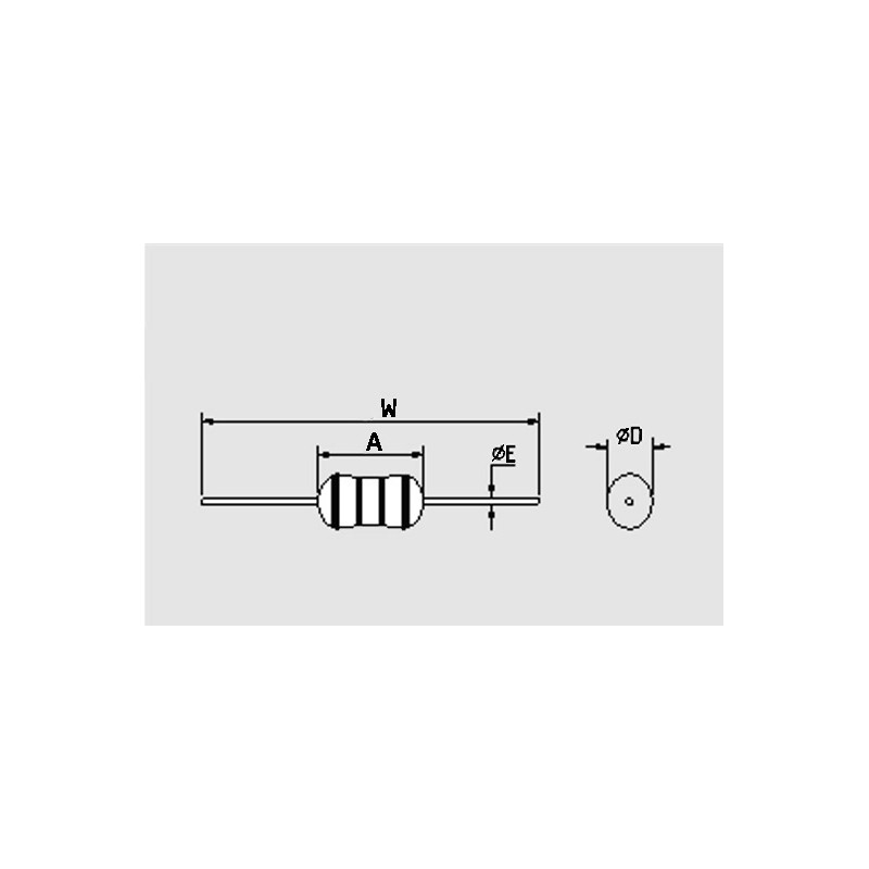 41984 EC46 0,015H EC46153J-508514-T EC46153J-508514-T miniature fixed inductors EC46 by ECE. * series: EC46* axial* taped* tolerance: 5%* case: 5.2x10mm* operating temperature range: -20...+100°C* dimensions: A=10mm, W=63mm, ØD=5.2mm, ØE=0.65mm* by ECE