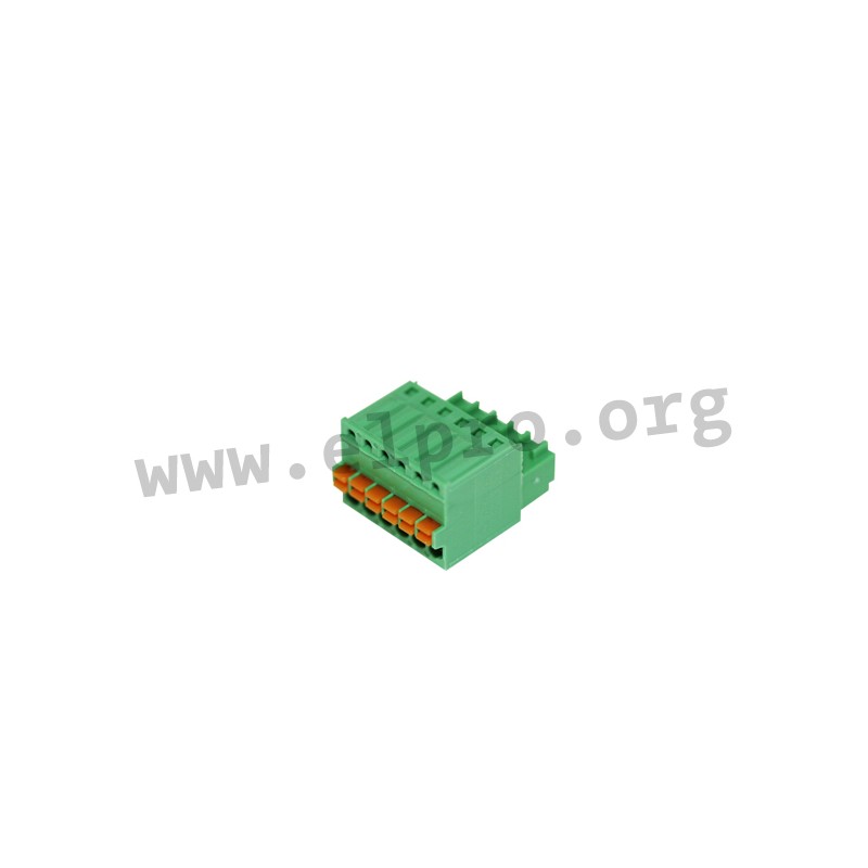 2- to 12-pole terminal multiconnectors in green with a push-in spring connection. these terminal blocks are suitable for a wire cross section of 0,2 to 0,5mm² and have a wire-to-board connector system. They are made of PA66 (UL94V-0) and have a wire stripping length of 8mm. We offer the following types of this Degson series: 15EDGKD-2.5-02P-14-00A(H), 15EDGKD-2.5-03P-14-00A(H), 15EDGKD-2.5-04P-14-00A(H), 15EDGKD-2.5-05P-14-00A(H), 15EDGKD-2.5-06P-14-00A(H), 15EDGKD-2.5-08P-14-00A(H), 15EDGKD-2.5-10P-14-00A(H) and 15EDGKD-2.5-12P-14-00A(H).