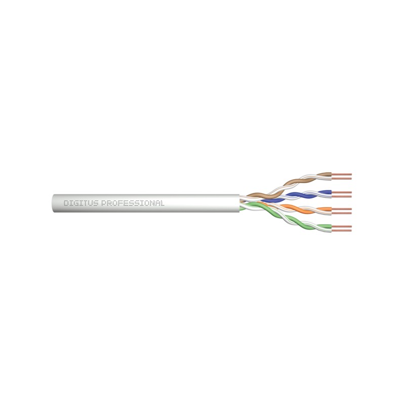 PVC twisted pair cables in grey. These Cat. 5e data cables are suitable for the installation of cable lines of class D (100MHz) and have a PVC outer jacket. They have the colour code blue-white/orange-white/green-white/brown-white and comply with ISO/IEC 11801, DIN EN 50173 as well as DIN EN 50288-2-1. We offer the following types of this Digitus series: CAT 5e F-UTP, CAT 5e SF-UTP, and DK-1511-V-305-1.