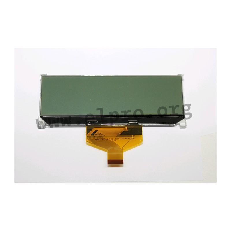 Display Elektroniks FSTN LCD displays in 240x64 format offer a clear and precise display of monochrome graphics. Thanks to the LED backlighting, optimum visibility is guaranteed in any environment. Easy connection to the system is made possible by connection via SPI/I²C. The operating temperature can be varied in the range from -20 to +70°C. These high-quality graphics modules are perfect for use in demanding industrial applications and appealing consumer products.