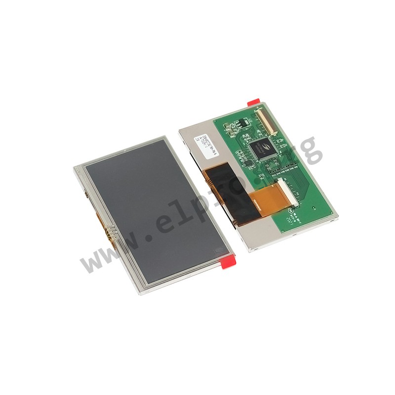 TFT LCD displays with a resolution of 480x272 pixels and full-colour display (256 colours). These displays have LED backlighting for optimal visibility. In addition, versions with touch panel are available under the designations DEM_-T or DEM_(_-TOUCH).