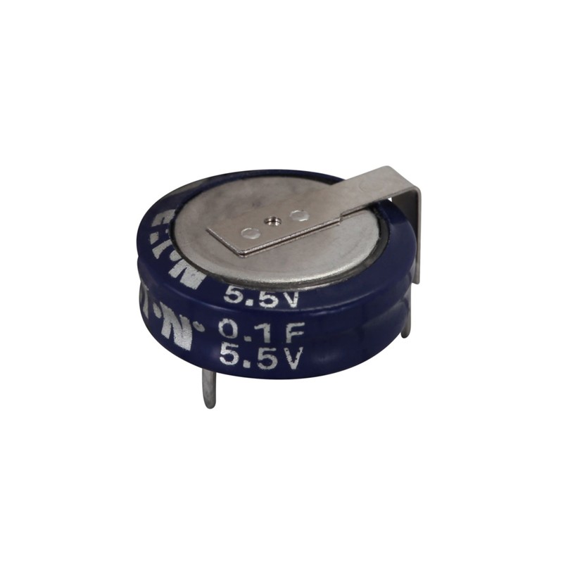 Eco-friendly double layer capacitors in a horizontal (KR-5R5H_), vertical (KR-5R5V_) or cylindrical type (KR/KW-5R5C_), as well as they are available in standard length or short (KR-5R5C_H-R). They have a low leakage current, a high capacitance and a long service life. We offer various types of this Eaton series.