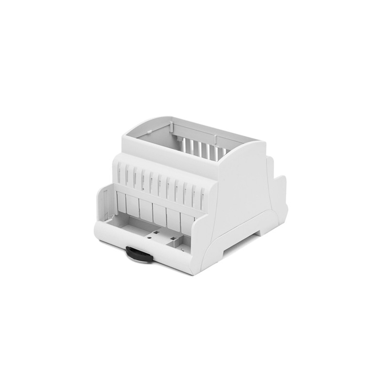 ABS enclosures in grey and available in diverse dimensions. These housings are suitable for DIN rail mounting and they are available as a type with removable side panels (MR_TK-GR) or with ventilation openings (MR_TK/AR). We offer the following types of this Elbag series: MR1/TK-GR, MR2/TK-GR, MR3/TK-GR, MR4/TK-GR, MR4/TK/AR, MR6/TK-GR, MR6/TK/AR, MR9/TK-GR, and MR9/TK/AR.